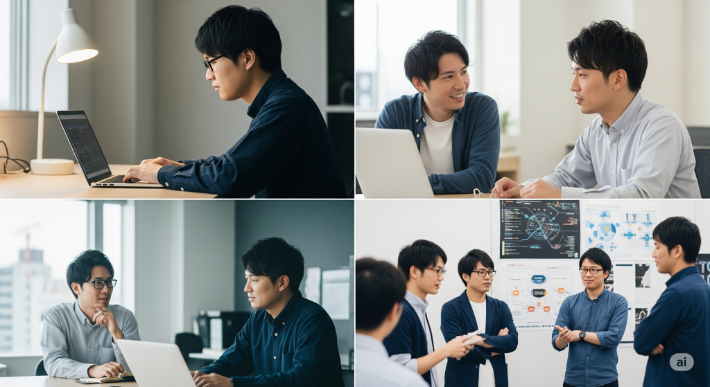 共通するスキルセットとしては、まず「高い自己学習能力」が挙げられます。誰かから教えてもらうのを待つのではなく、自分で課題を見つけ、必要な情報を収集し、主体的に学習を進めていくことができます。インターネット上のドキュメントを読んだり、オンラインコミュニティで情報を交換したりしながら、自力でスキルを高めていく力は不可欠です。