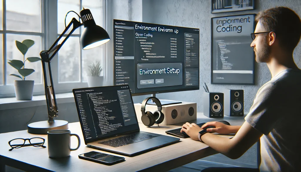 プログラミングの環境構築とは、ソフトウェアを開発するために必要なツールや設定を整える作業のことを指します。単にパソコンを購入してプログラミングを始められるわけではなく、開発に適したソフトウェア、プログラミング言語、エディター、ライブラリなどを適切に組み合わせる必要があります。これらが整って初めて、プログラムを書く、動かす、テストするという作業がスムーズに進められるのです。